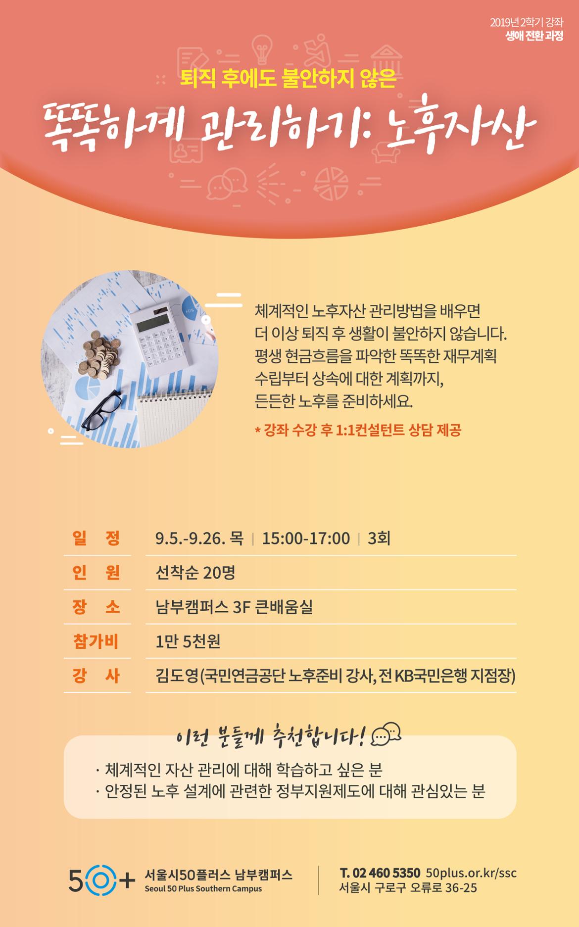 (2 회차) 2019.09.19(15:00 ~ 17:00) 큰배움실 김도영 노후파산 예방을 위한 자금관리 전략 없음