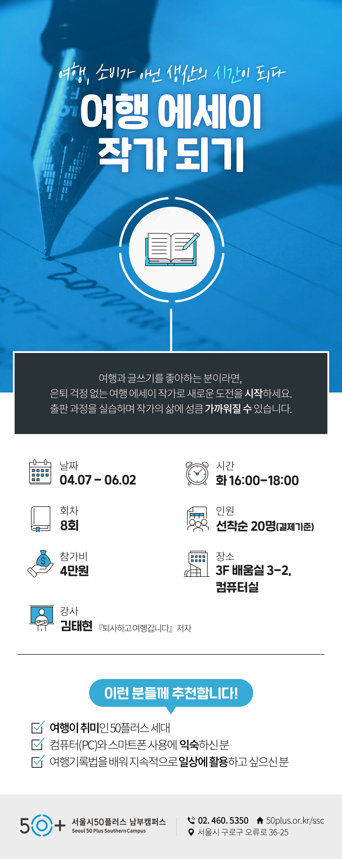 (1 회차) 2020.04.07(16:00 ~ 18:00) 배움실3-2 김태현 나도 여행 작가! -