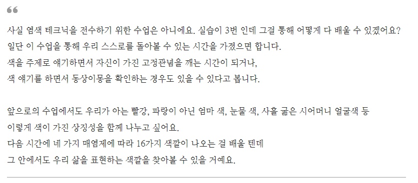 수강생들의 열기에 대해 놀라워하는 강사님께 이번 수업을 통해 어떤 것을 전하고 싶은지 물었다.