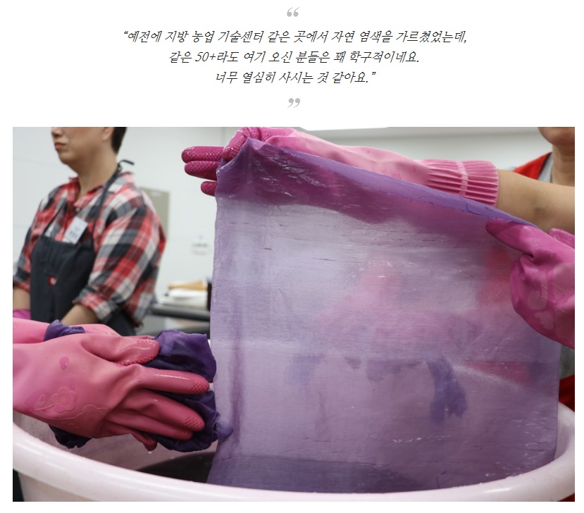 '우리 안의 색을 찾는 자연염색' 강의실엔 조미숙 전통염색 교육연구소 대표님과 기대감으로 가득찬 20여명의 수강생들이 있었다.