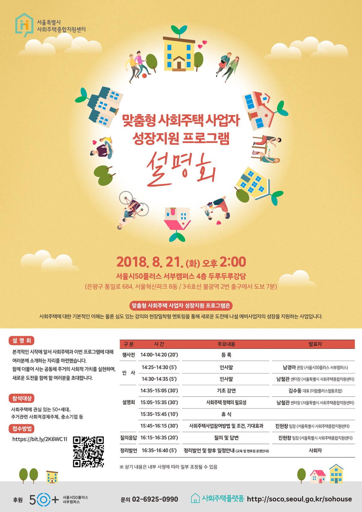 설명회는 오는 8월 21일, 오후 2시부터 '서울혁신파크 내 서울시50플러스 서부캠퍼스 4층 두루두루강당'에서 진행될 예정입니다.
