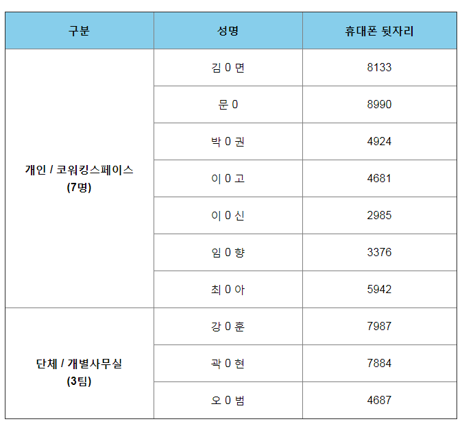 ※ ctrl+F를 누르신 후 핸드폰 뒷자리로 찾으시면 됩니다.