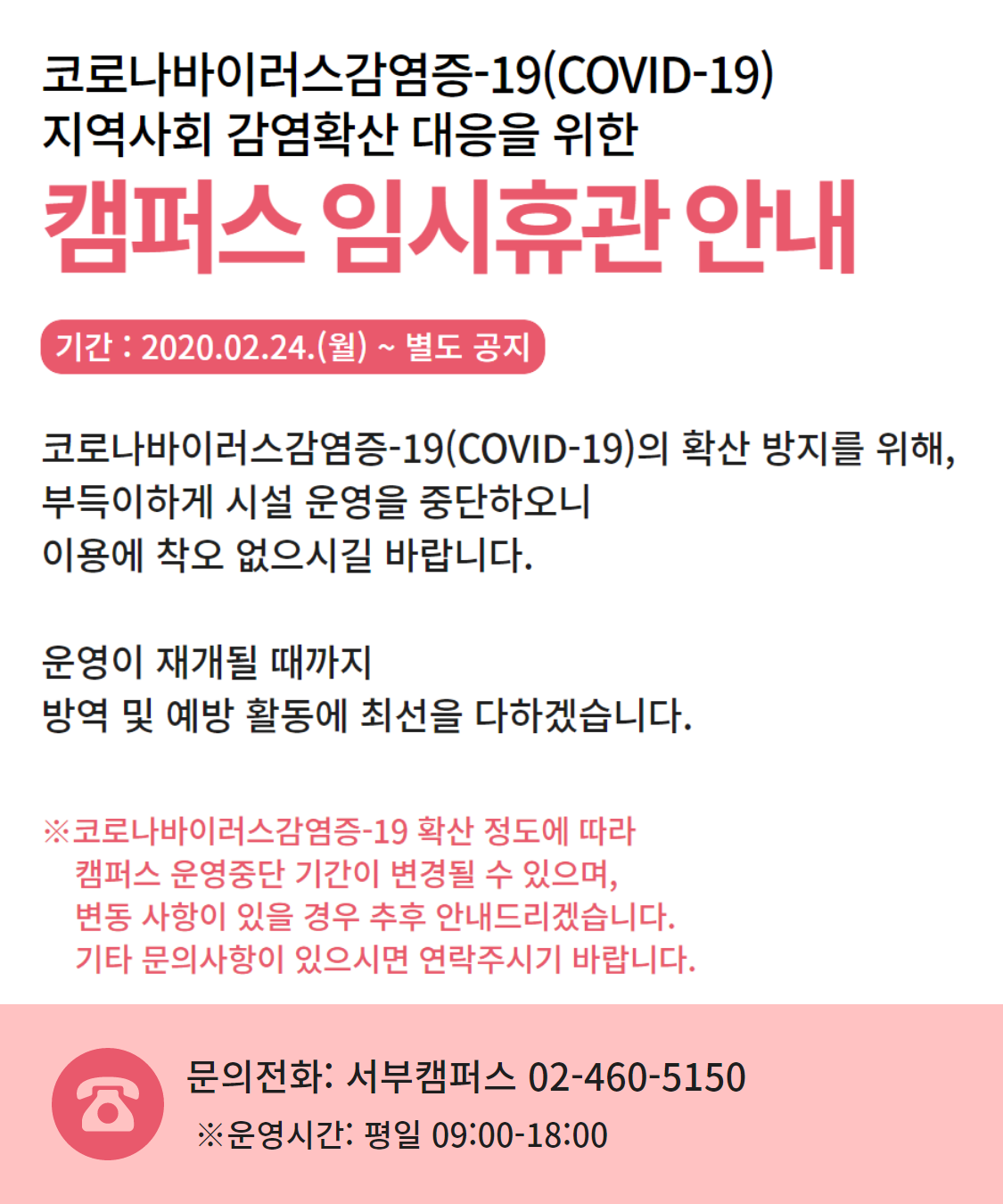 [긴급공지] 서부캠퍼스 임시휴관 안내