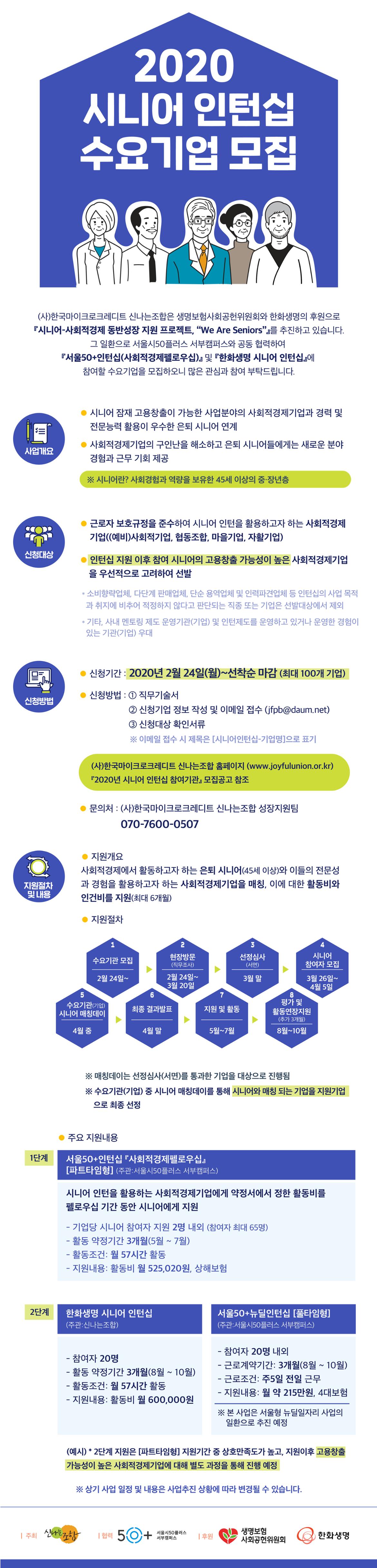 2020 시니어 사회적경제 인턴십×서울50+인턴십(사회적경제 펠로우십) 수요기업 모집공고