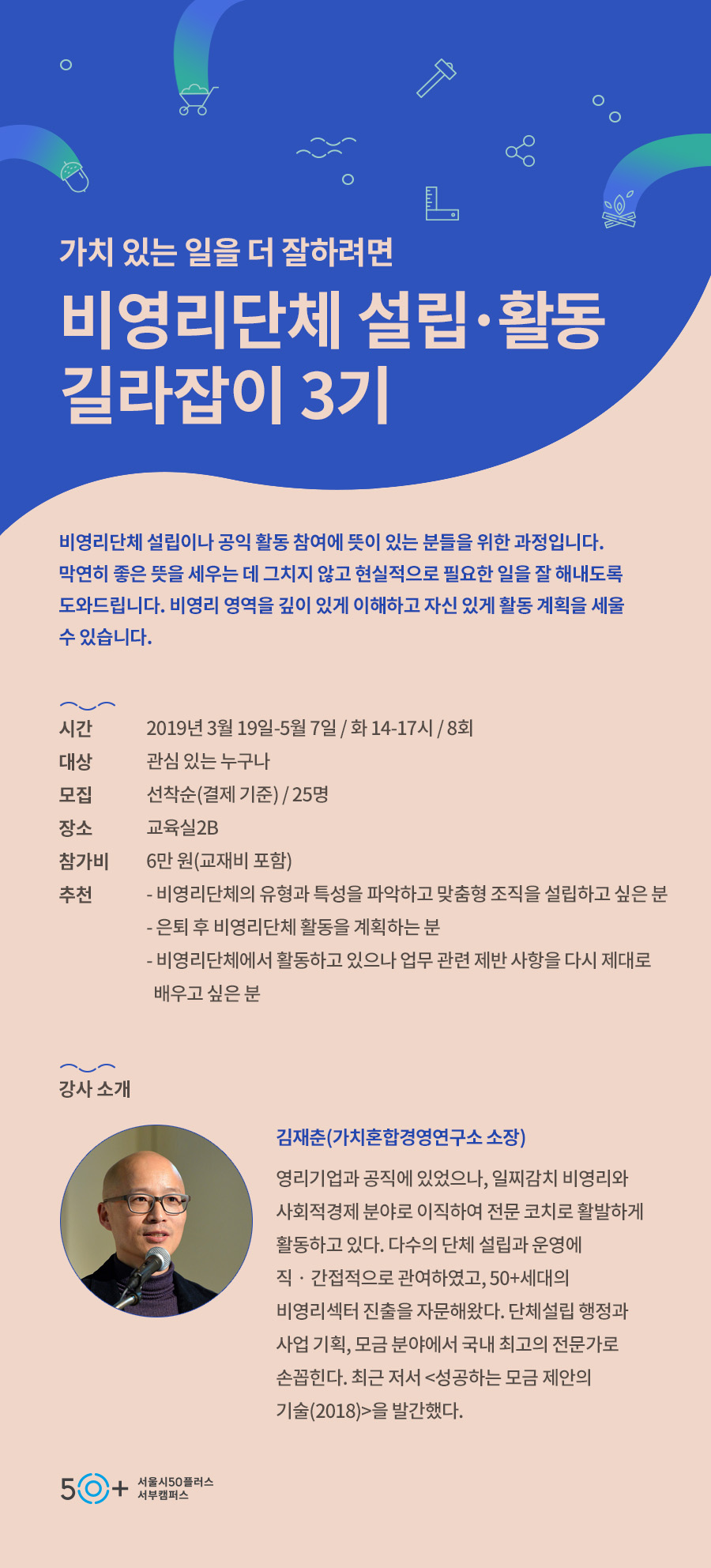 (7 회차) 2019.04.30(14:00 ~ 17:00) 교육실2B 김재춘 비영리 단체 운영을 위한 사업기획 방법 없음