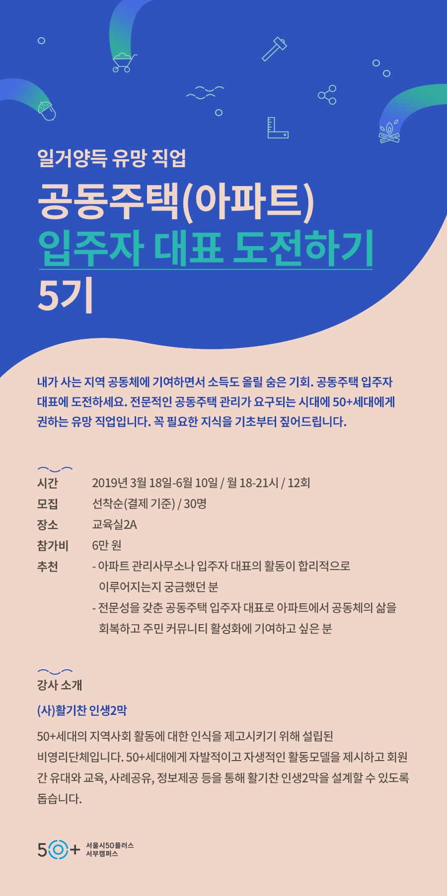 • - 50+사회활동에 대한 인식 제고 및 교육, 정보제공을 통해 인생 2막을 설계할 수 있도록 돕는 비영리단체
