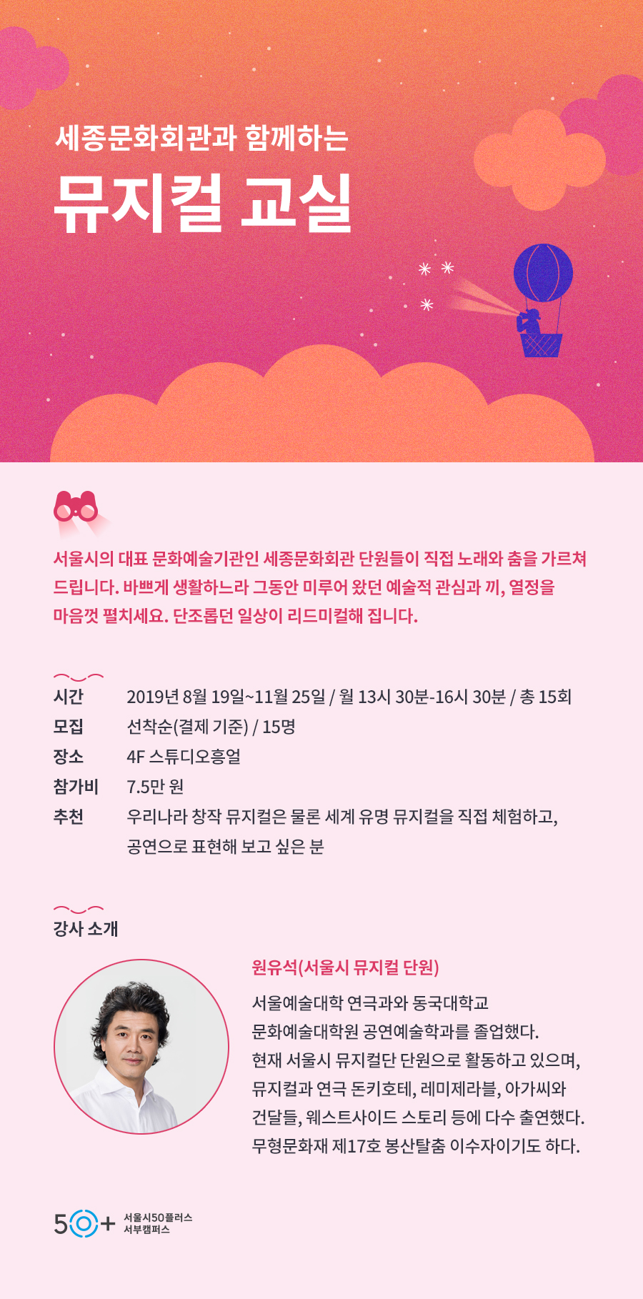 뮤지컬교실 과정은 7월 22일(월) 오전 9시부터 신청 가능합니다.