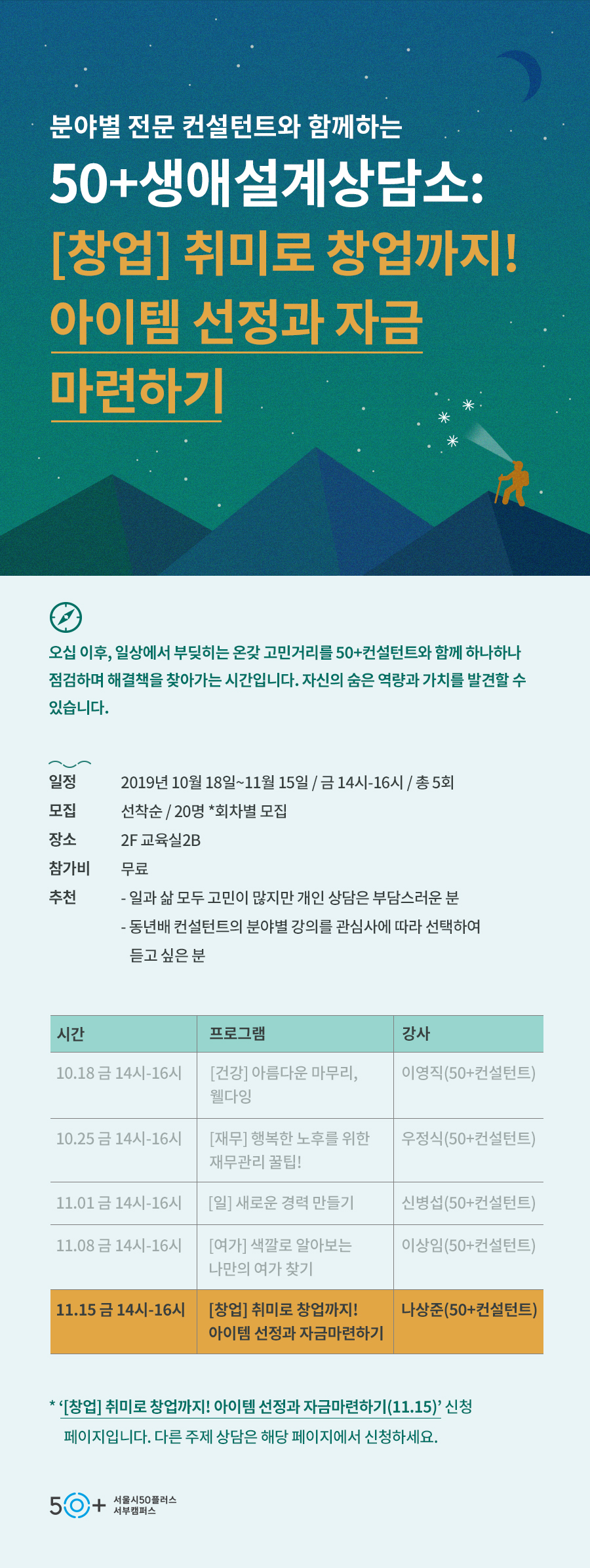 [서부]50+생애설계상담소: 일, 새로운 경력 만들기 [11.1]