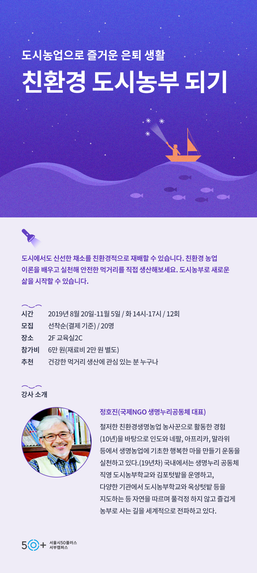 (1 회차) 2019.08.20(14:00 ~ 17:00) 교육실2C 정호진 도시농업이란? / 도시농업의 가치와 장점 없음