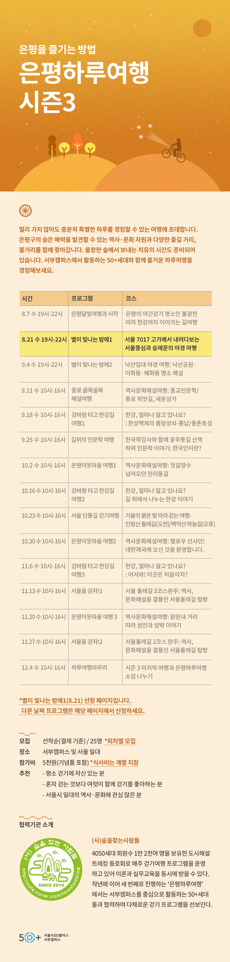 [도심권][추가모집, 일정변경] 50+어울림 걷기대회