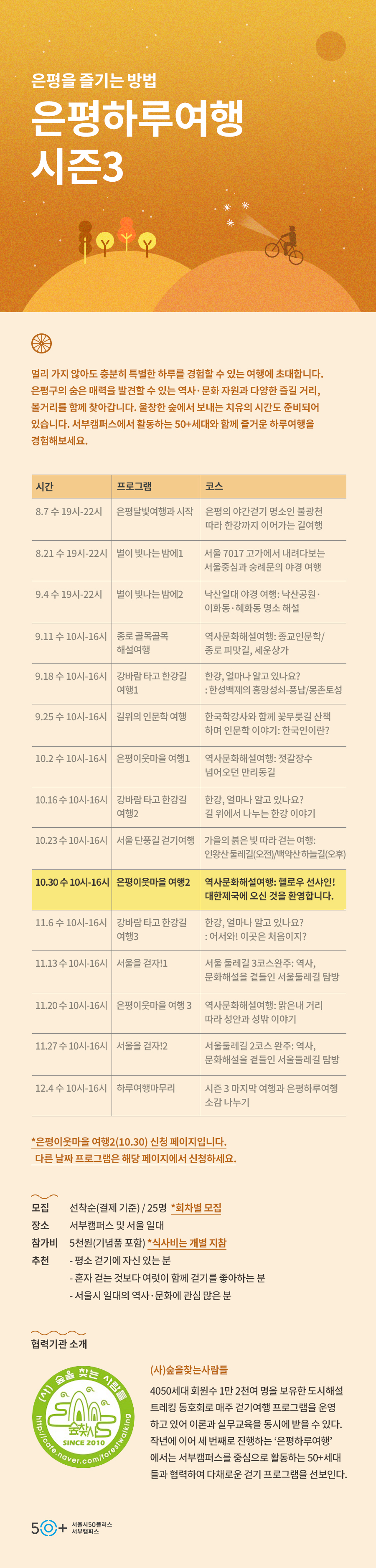 ※ 은평하루여행: 은평이웃마을 여행2 과정은 9월 2일(월) 00시부터 신청 가능합니다.