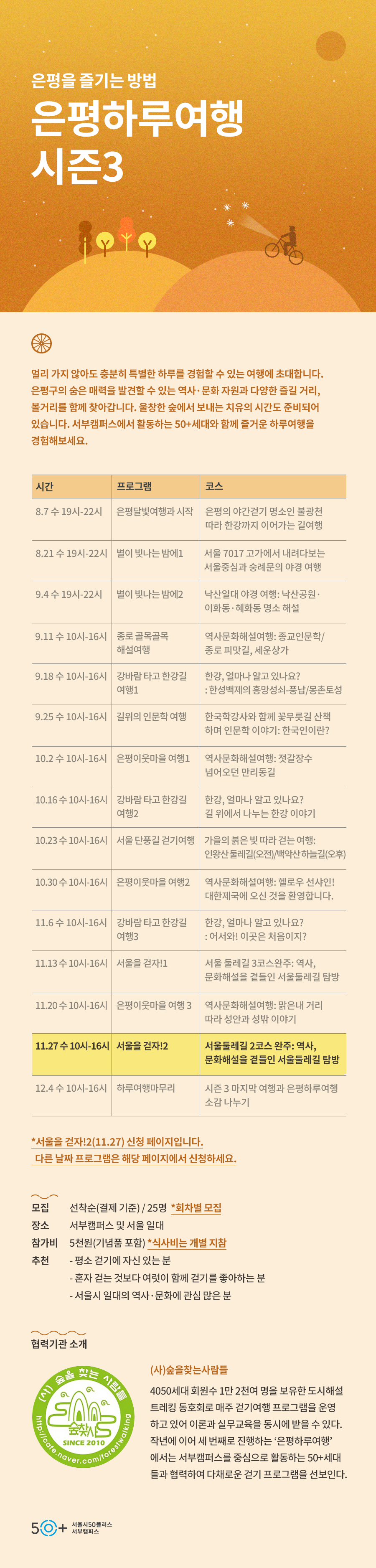 ※ 은평하루여행: 서울을 걷자!2 과정은 9월 30일(월) 00시부터 신청 가능합니다.