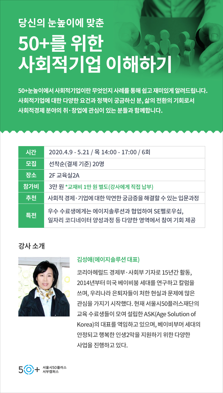 (1 회차) 2020.04.09(14:00 ~ 17:00) 교육실2A 김성애 ▪왜 사회적기업(SE)인가?
