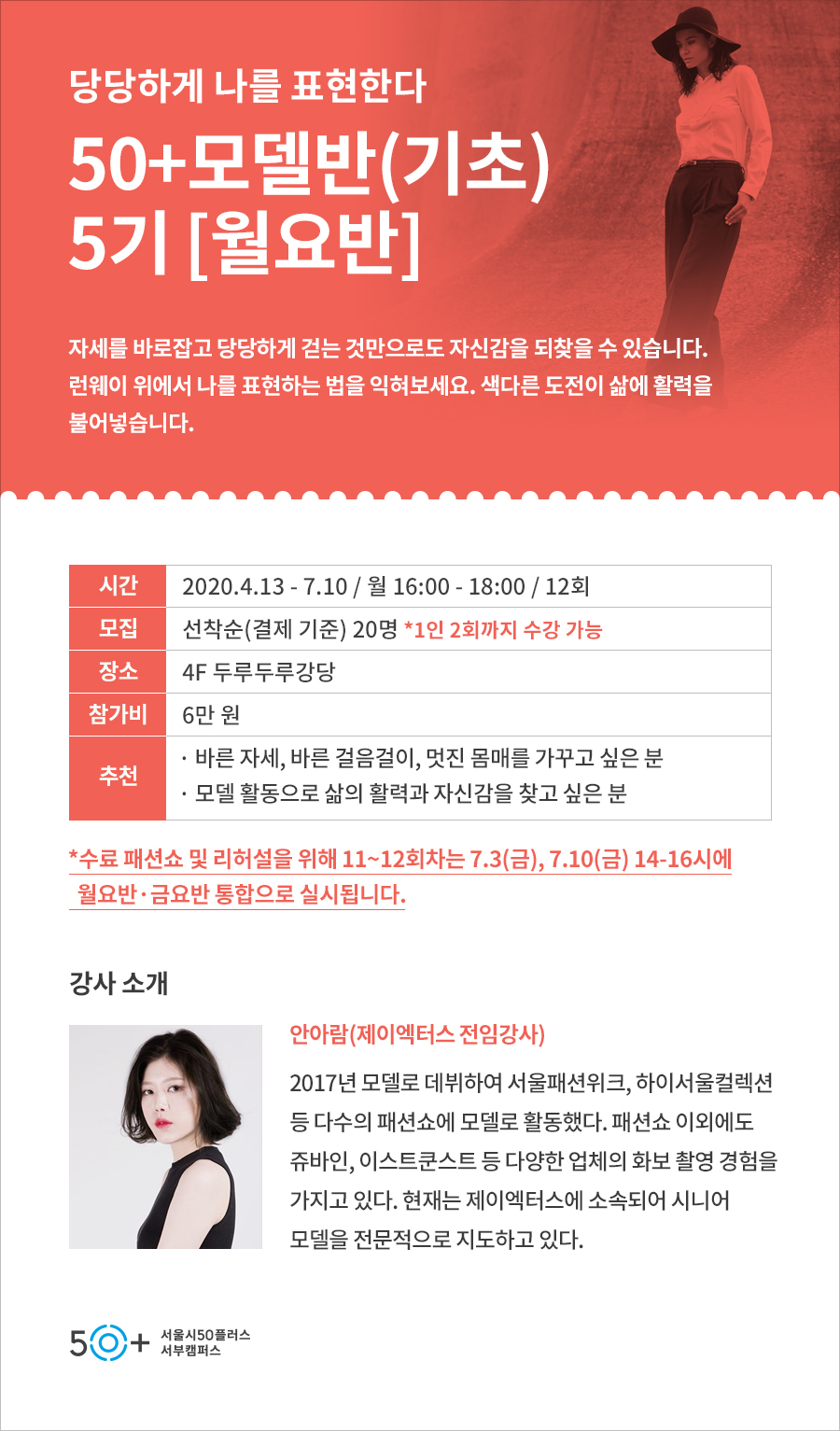 (6 회차) 2020.05.25(16:00 ~ 18:00) 두루두루강당(장비고장으로 대관 임시중단) 안아람 계절별 의상 워킹·포즈 없음