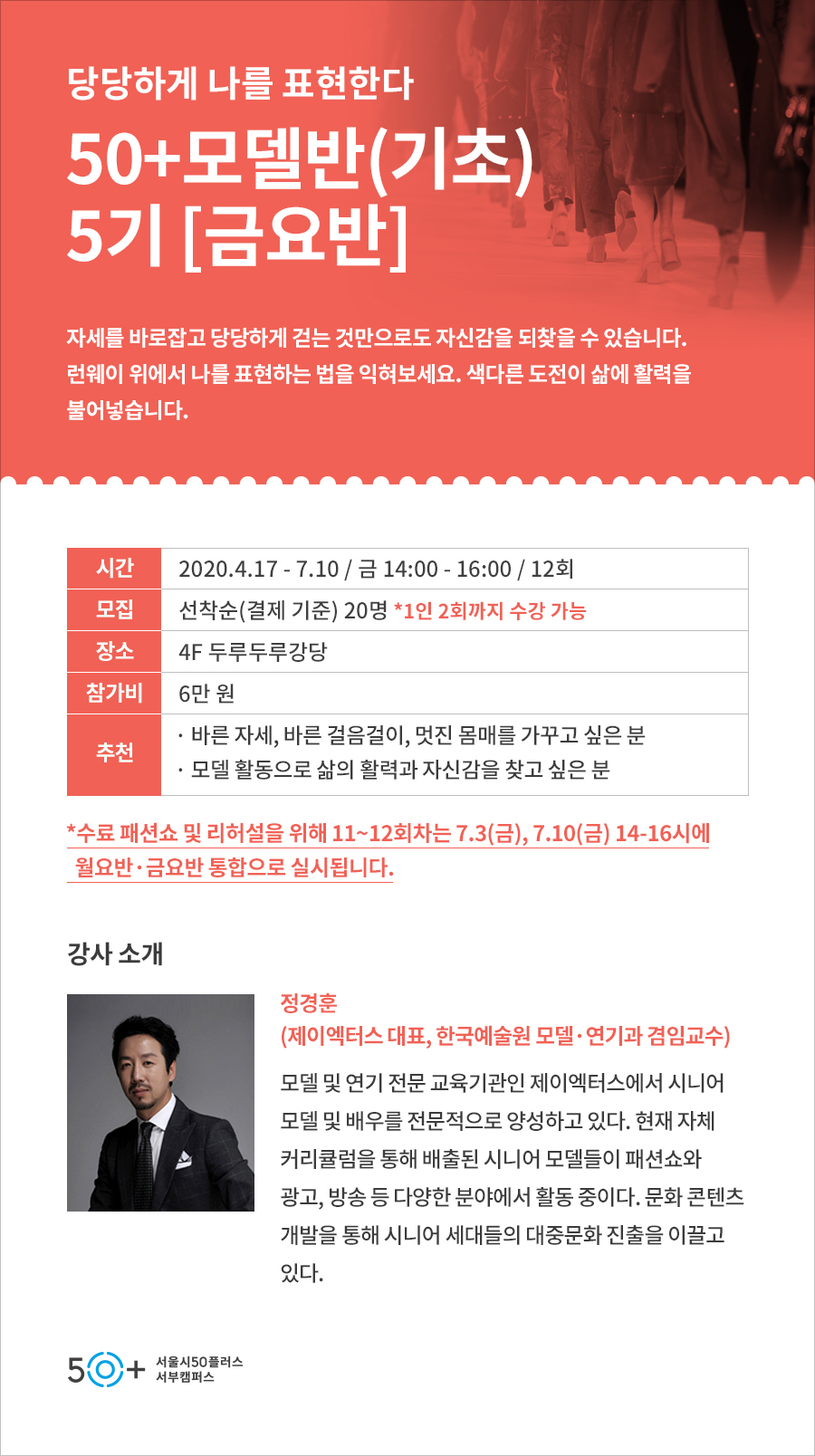 (6 회차) 2020.05.29(14:00 ~ 16:00) 두루두루강당(장비고장으로 대관 임시중단) 정경훈 계절별 의상 워킹·포즈 없음
