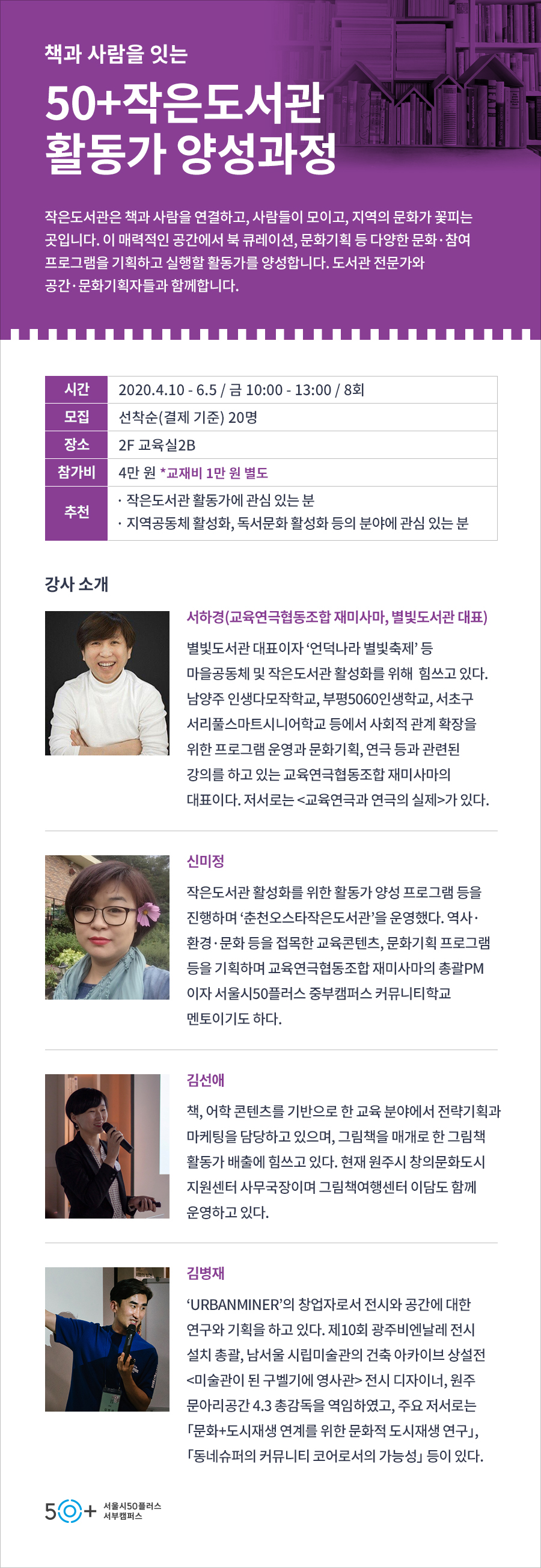 (1 회차) 2020.04.10(10:00 ~ 13:00) 교육실2B 서하경 작은도서관 활동가란? 없음
