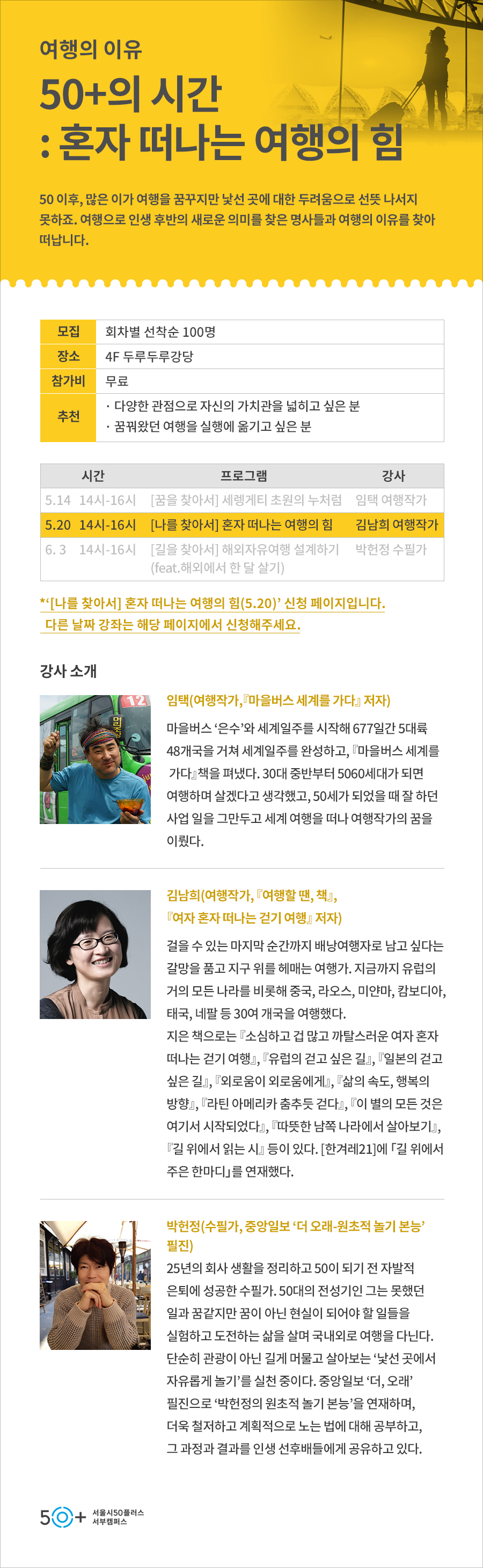 50+의 시간: 혼자 떠나는 여행의 힘[5.20]
