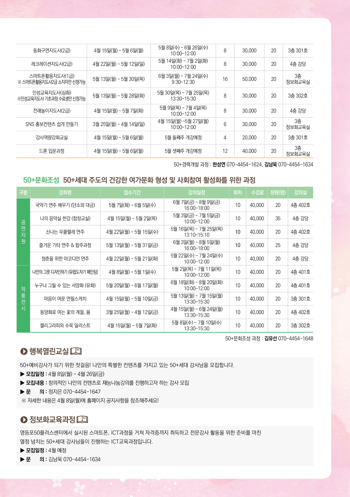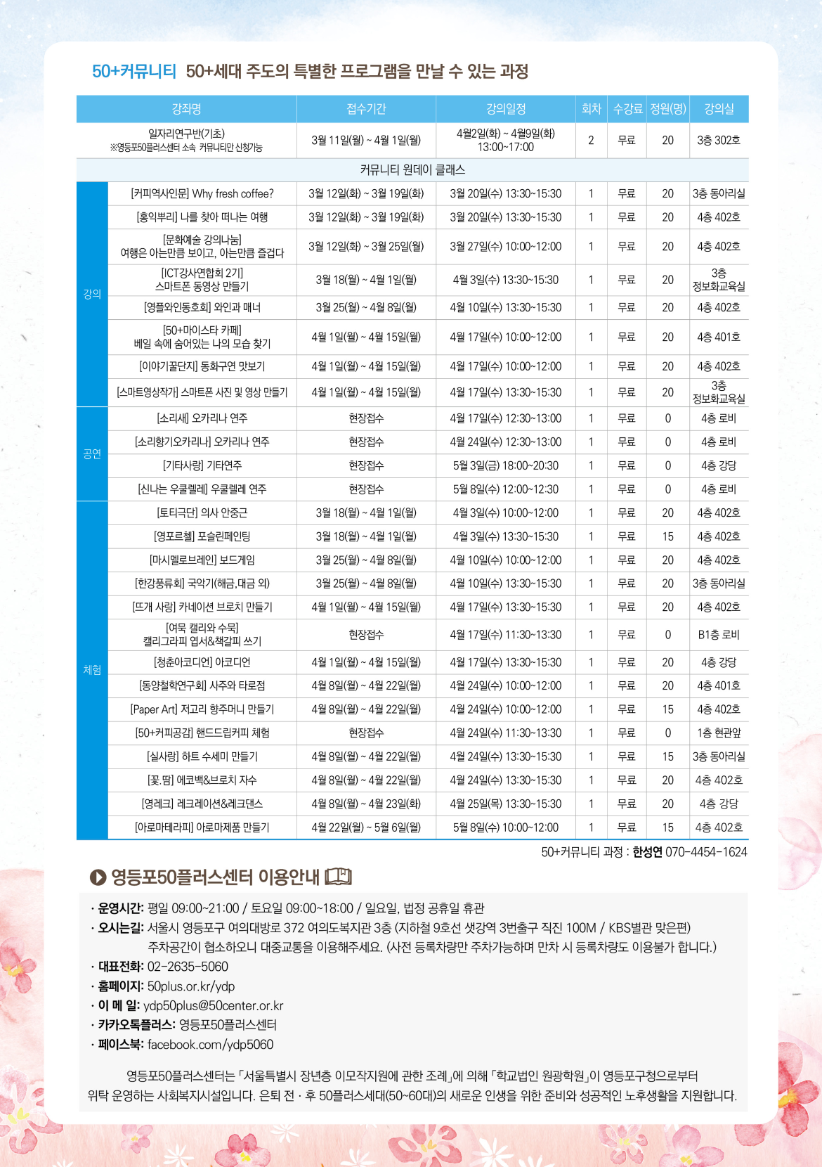 영등포50플러스센터 2019년 2분기 프로그램 안내지 입니다.