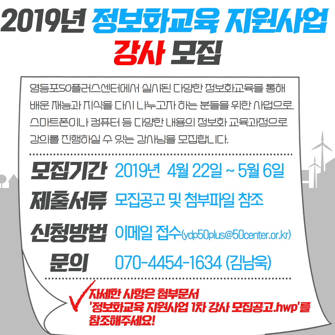 정보화교육 지원사업 1차 강사모집공고.hwp