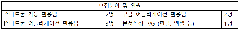 2019년 정보화교육 지원사업 1차 모집분야 및 인원