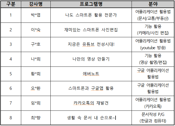 2019년 정보화교육 지원사업 1차 강사 선정자 명단