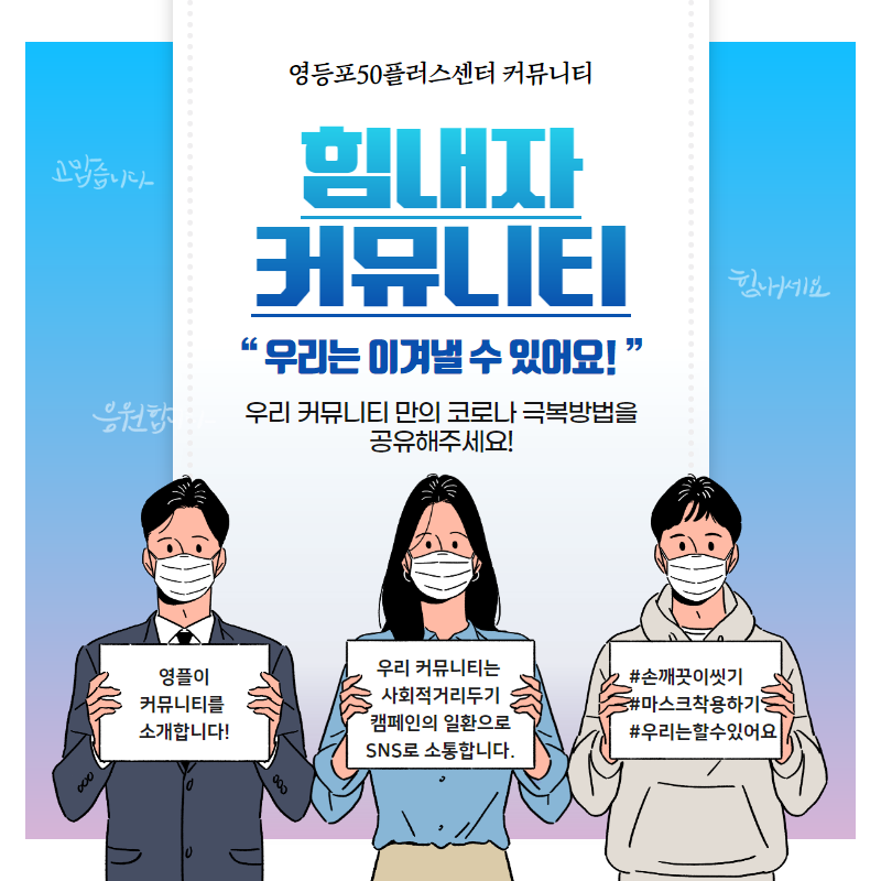 우리 커뮤니티 소개 및 다양한 코로나 극복방법을 소개해주세요^^