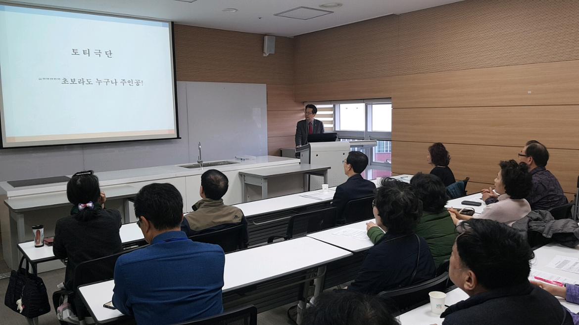 [토티극단]은 시니어 순수 아마추어 연극단으로 사회적 이슈를 포함한 다양한 주제의 연극을 직접 기획하고 공연하여 사회참여활동을 하는 커뮤니티입니다. 누구나 참석 가능하오니, 함께 커뮤니티 활동을 하고 싶으신 분들의 많은 참여 부탁드립니다!!