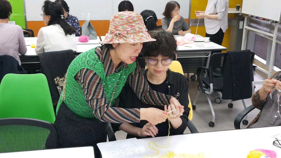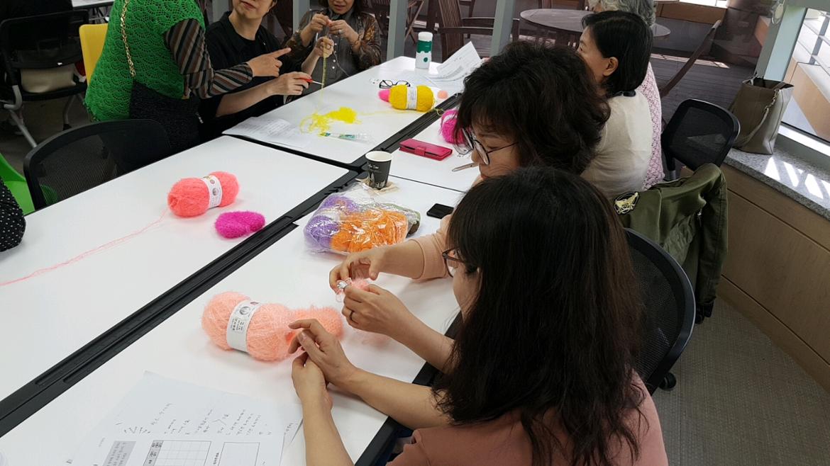‘커뮤니티 나눔사업’의 일환으로 지난 4월 24일(수) 13:30~15:30 3층 커뮤니티실에서 하트 모양의 수세미를 만들어보는 시간을 가졌습니다.