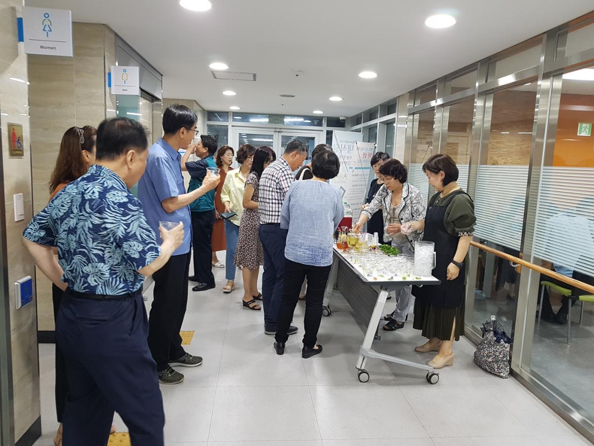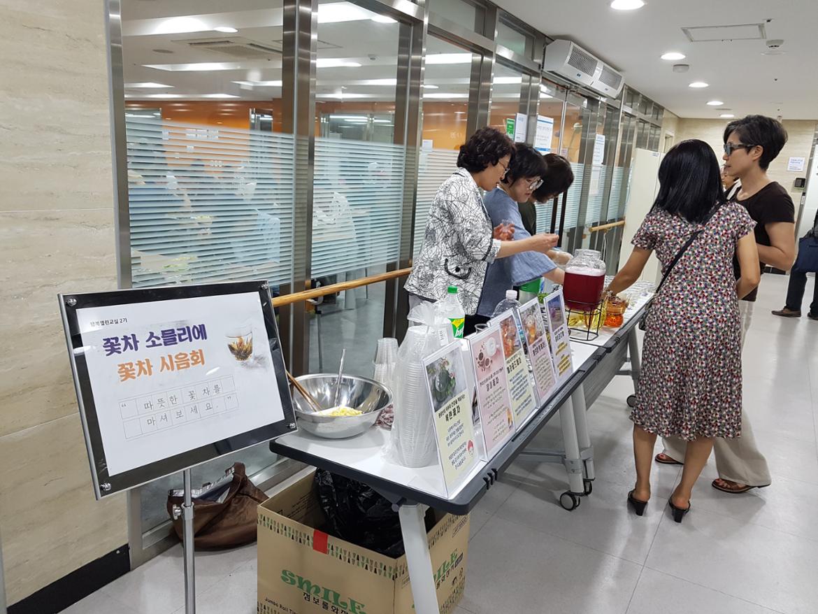 수강생분들은 그동안 배웠던 꽃차의 효능등을 설명하며 이용자분들에게 시음해주었고,