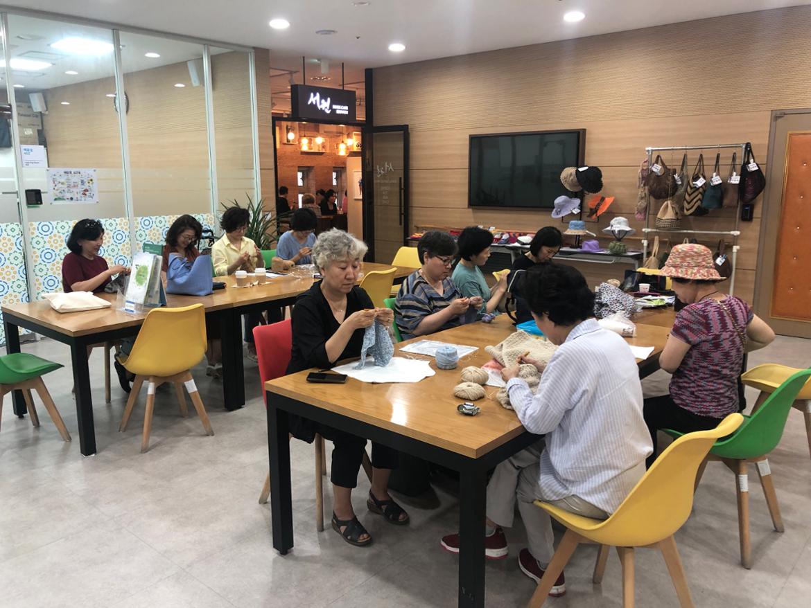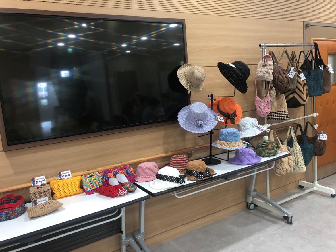 오늘은 행복열린교실 수강생들이 직접 짠 작품들과 커뮤니티 회원들도 함께 참여를 했는데요