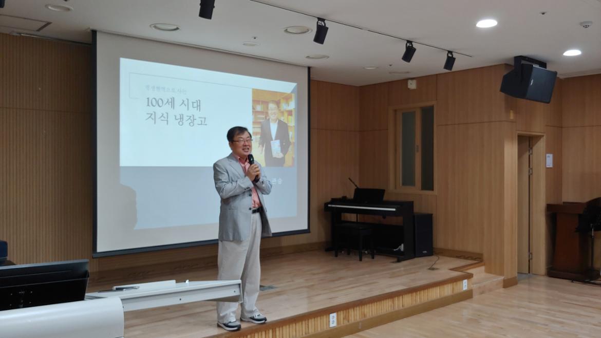 “당신의 지식 냉장고에는 어떤 지식이 얼마나 들어 있는가”를  화두로,  과거에 배운 지식에서 벗어나서 새로운 지식을 채워 가면서, 행복을 찾아가기 위한 노력을 기울려야 한다는 그의 강의는 많은 수강생들의 호응을 얻었다.