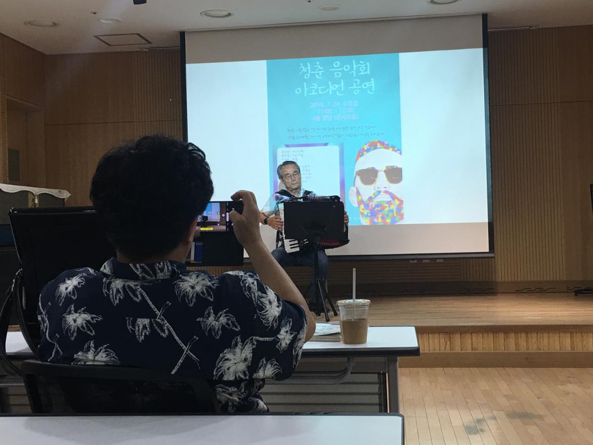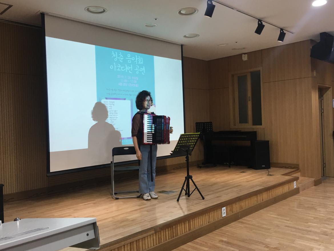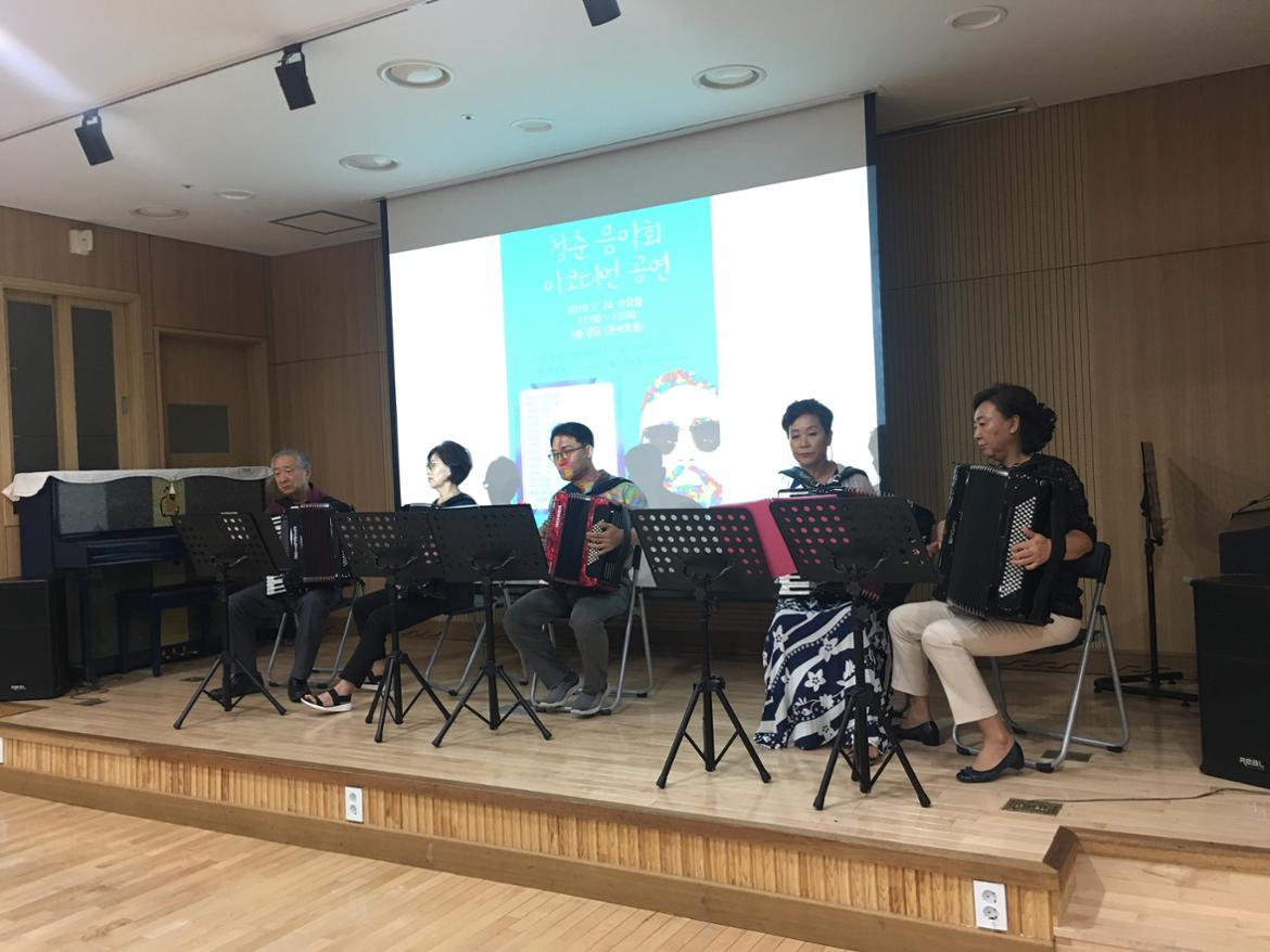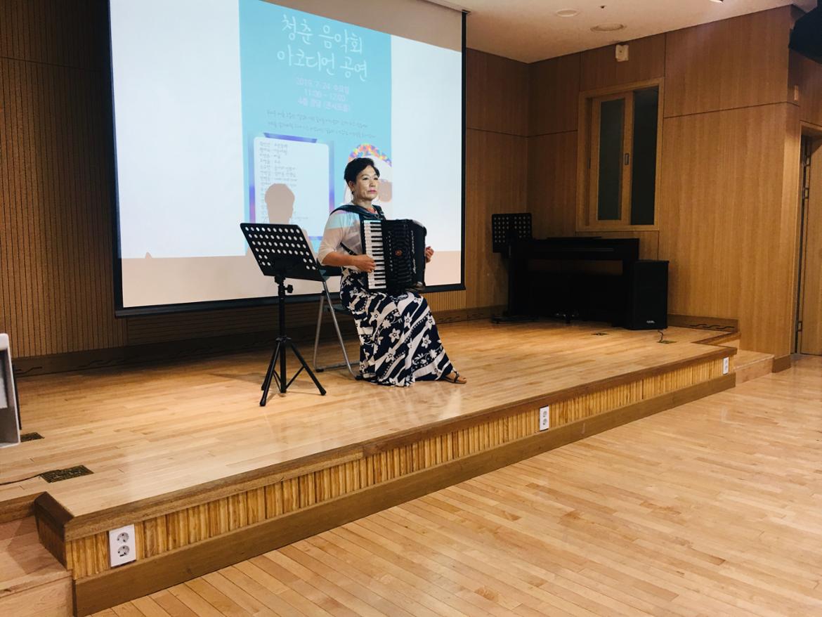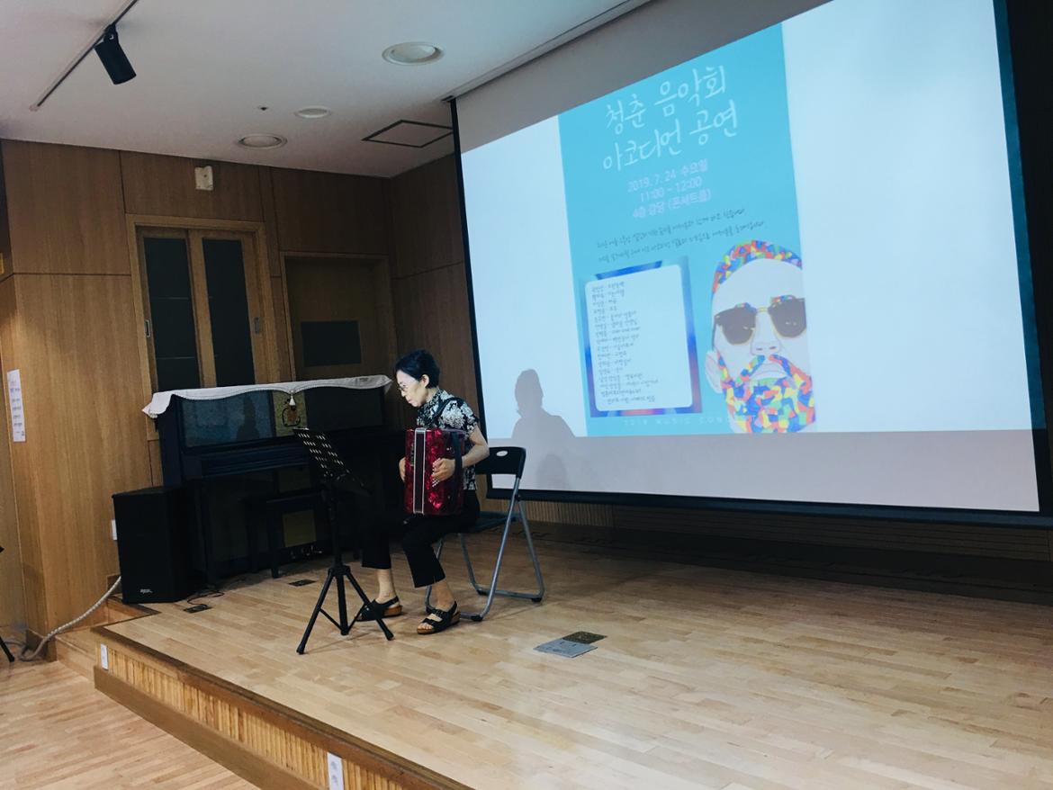 2019.7.24(수) 11시 청춘음악회 아코디언공연을 진행했습니다~