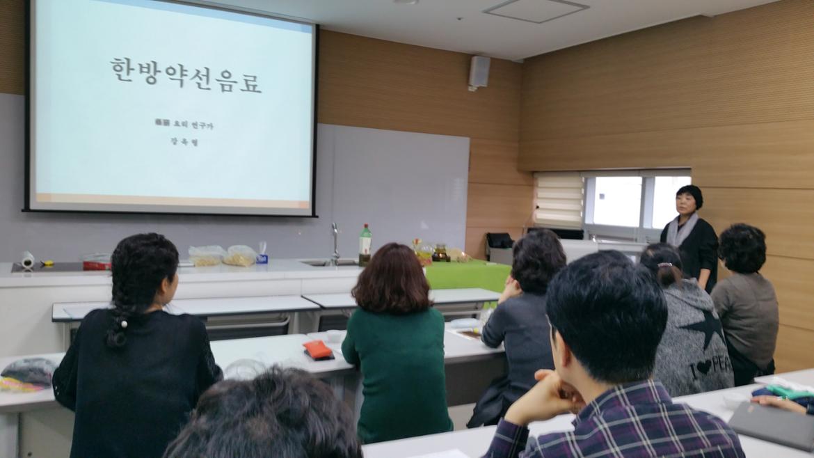 50+문화조성프로그램인 한방약선음료 강의가 4월 3일 16시에 4층 코워킹룸에서 개강하였습니다.