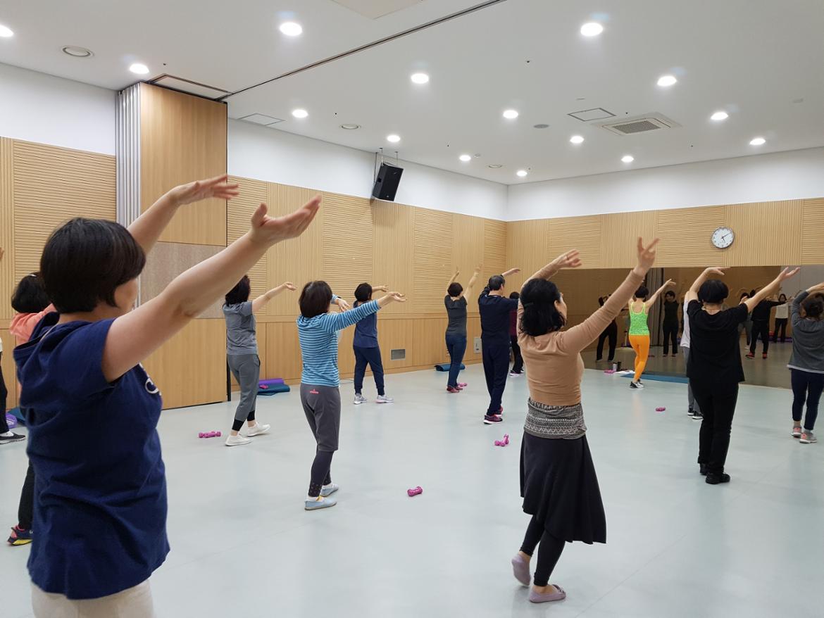 지난 화요일 12일 영등포 50+센터 다목적실, 넉넉하고 깔끔한 공간에서 살랑살랑 준비 운동으로