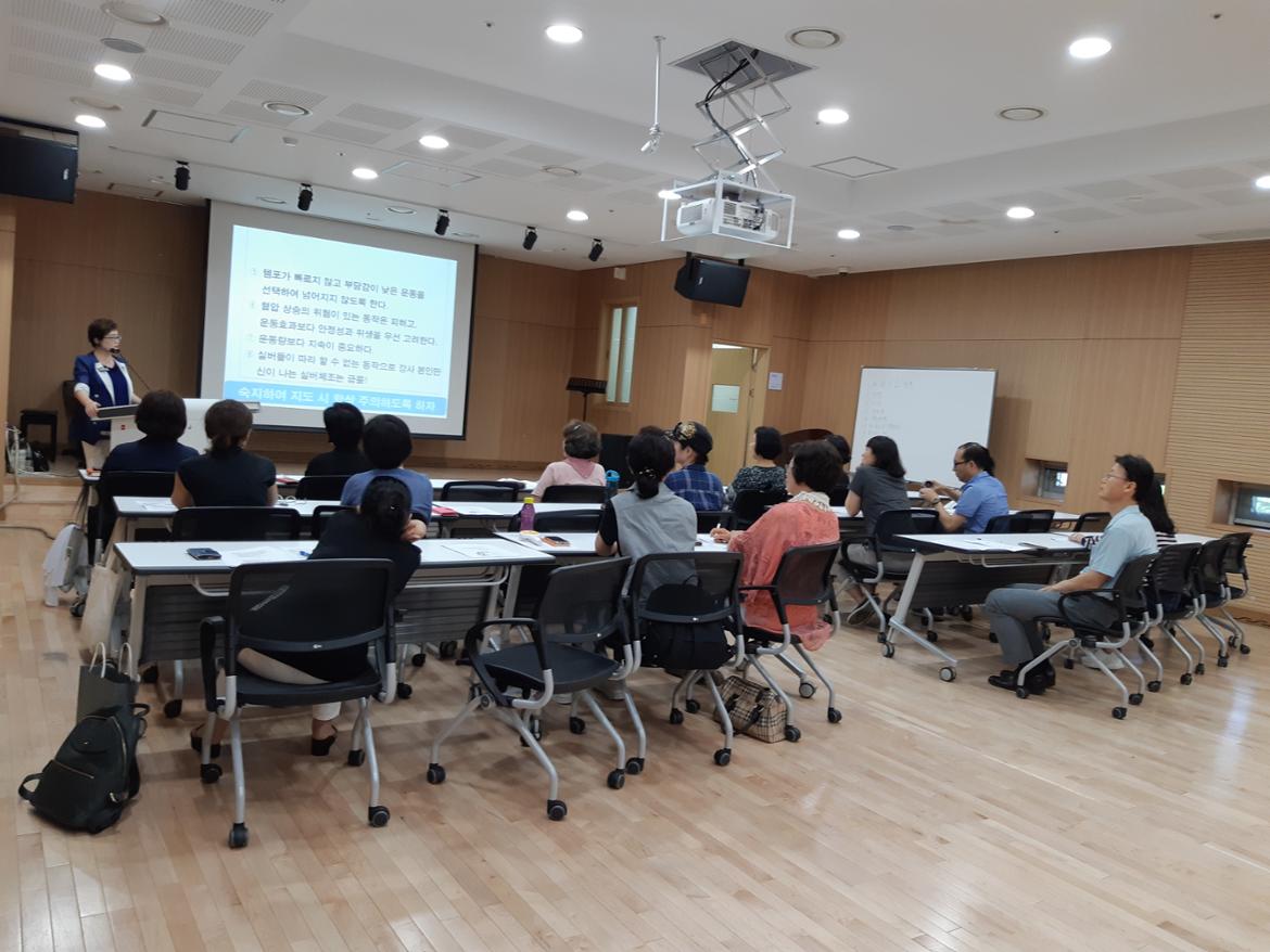 내 자신이 아니라 어르신들을 건강하고 재미있게 살 수 있도록 하는 실버건강체조 지도사 자격과정이 시작되었다. 이론과 실기를 함께 배움으로써 전문가로서의 역량을 배양하고 있다. 강사님의 우렁찬 목소리와 정렬적인 교육방식으로 수강생들의 마음을 사로잡았고 체조와 율동을 함께 함으로써 흥미를 더했다~