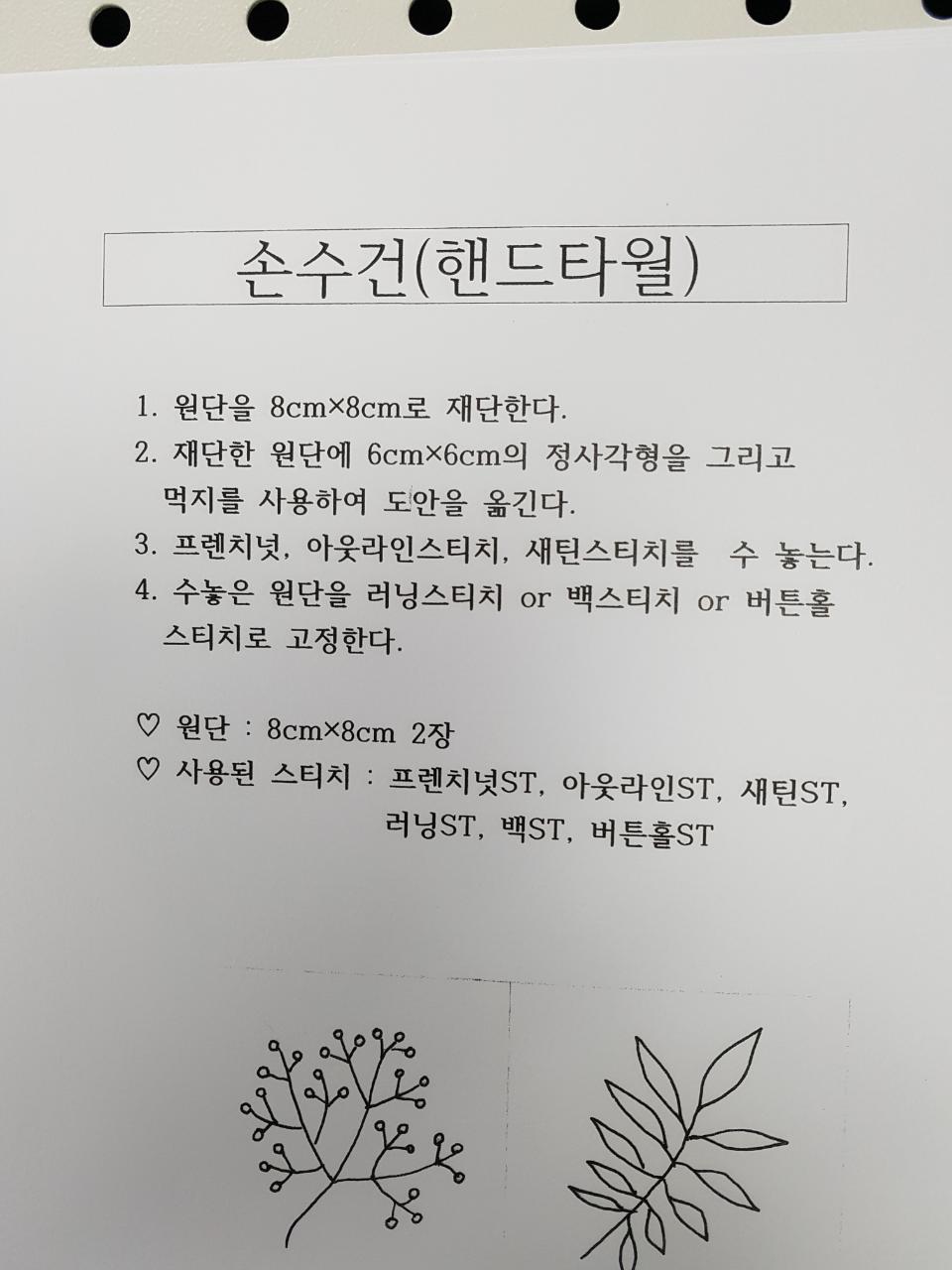 강사님이 주시는 오늘의 미션 "손수건 재단 및 자수" 하는 법 과 손수건 자수 작품의 예시를 아래에 소개한다.