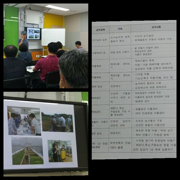 서울대 농대를 졸업하시고 현장에서 다양한 농사와 연구를 통해 후진양성을 하시는 실력파 강사 이심에도 약간은 수줍은 강의로 시작하였지만 수강생들 대부분이 직접 주말농장이나 텃밭, 옥상을 이용한 도시농업에 대한 궁금증에 충분한 정보와 노하우가 안내되었다.