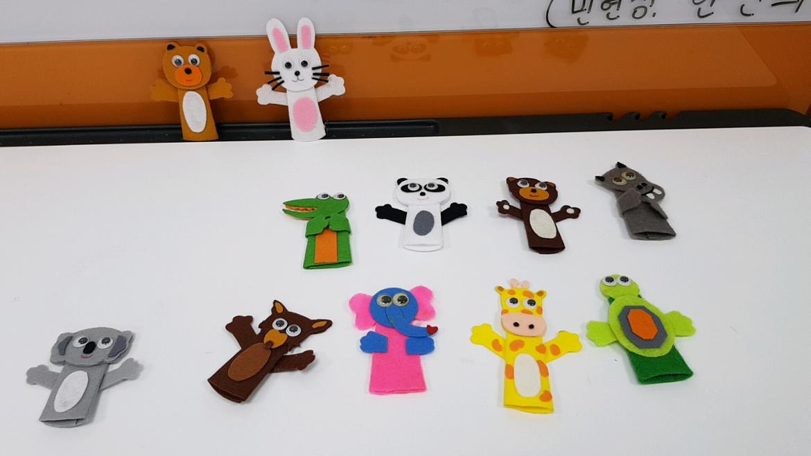 강사님이 준비해주신 도안을 보며 곰돌이와 토끼 등의 손가락 인형을 직접 만들어