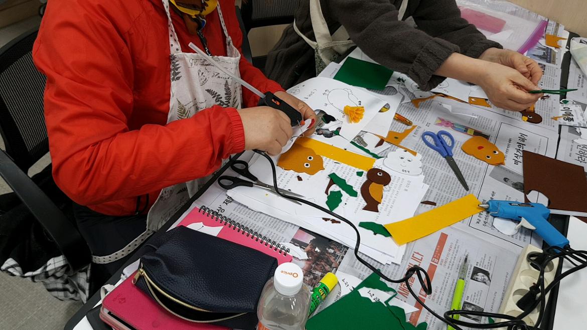좀 더 이야기의 풍성함을 위해 부직포로 동화 매체를 직접 만드는 시간도 가졌는데요.