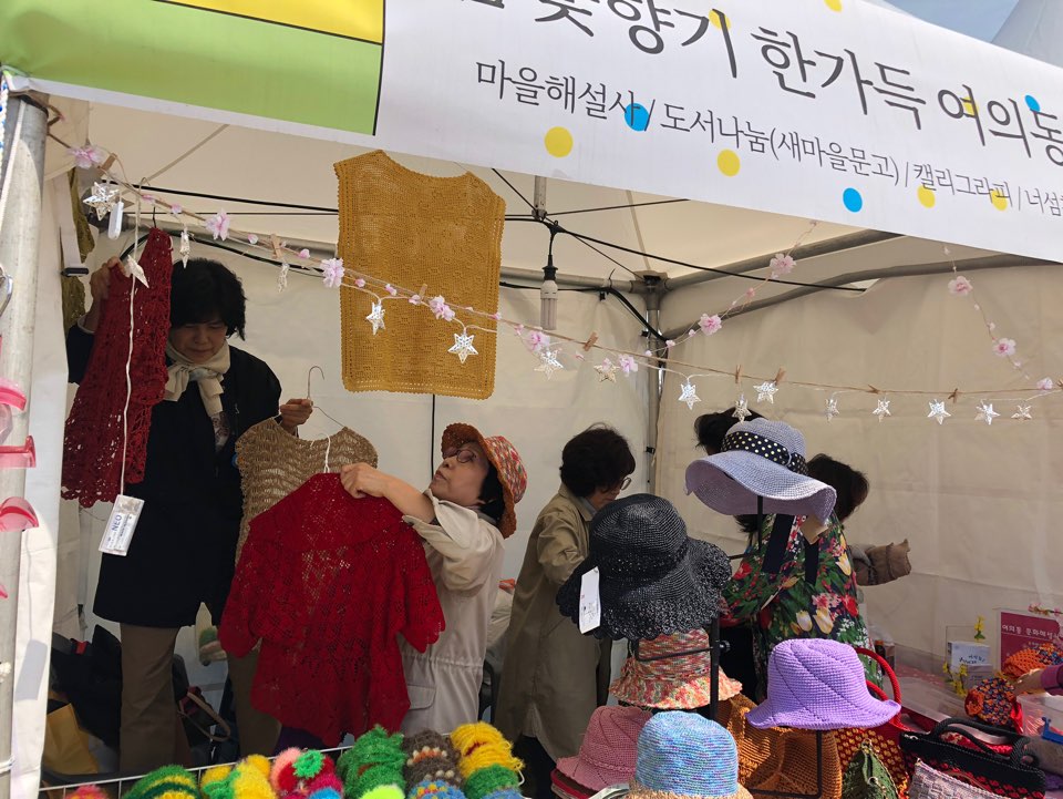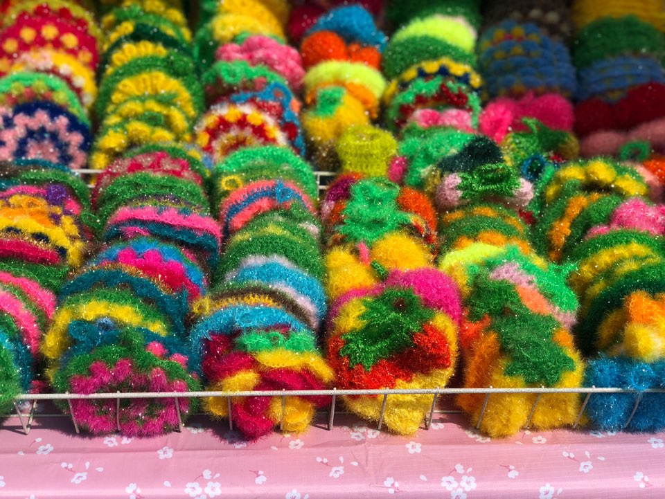 고급실로 직접 뜨개를 하여 수세미, 컵받침을 시작으로 팔찌, 모자, 옷, 가방 등등 다양한 잡화를 만들어 판매하고 계신대요!