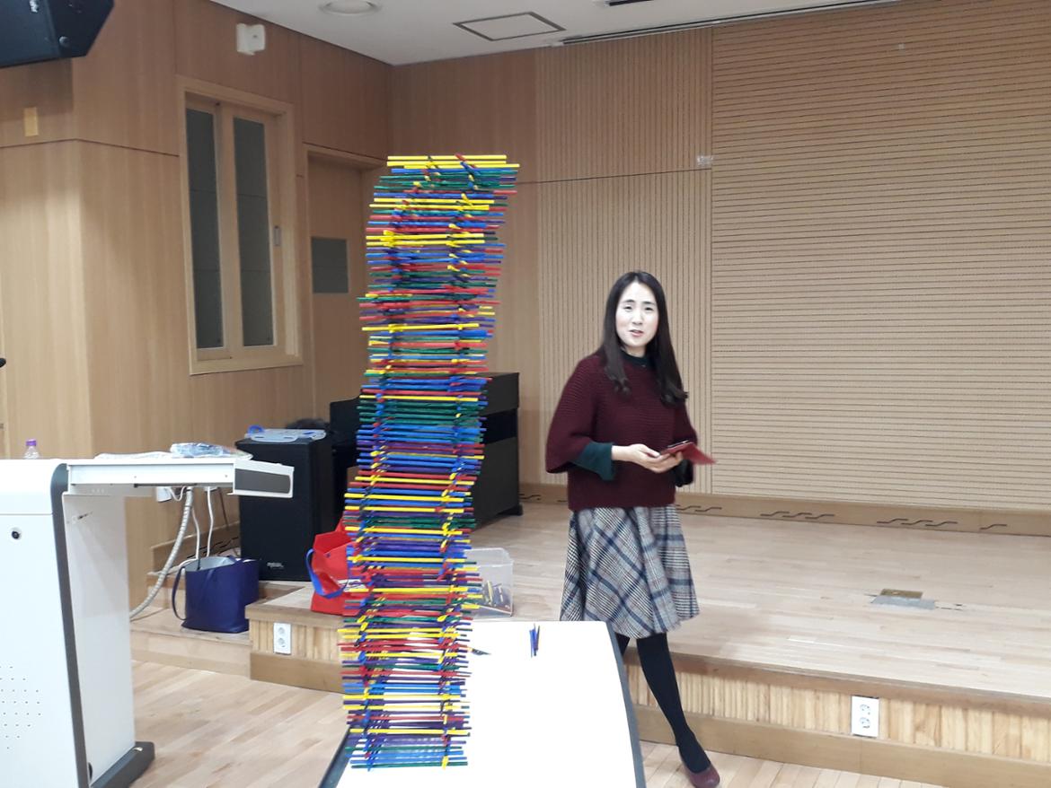 다양한 재료(산가지, 매직 실타래 등)를 가지고 함께 친밀감을 키워주는 동작.