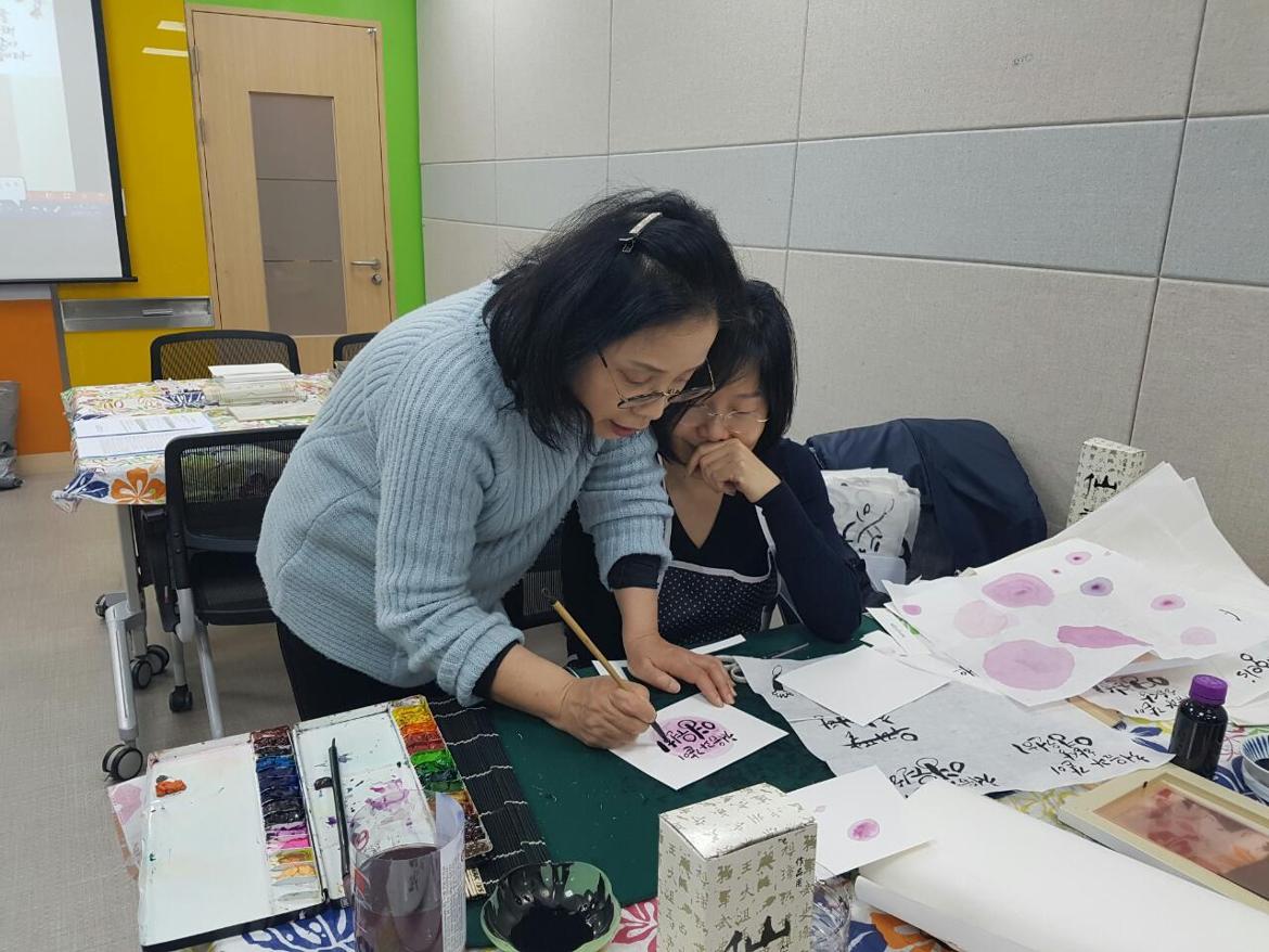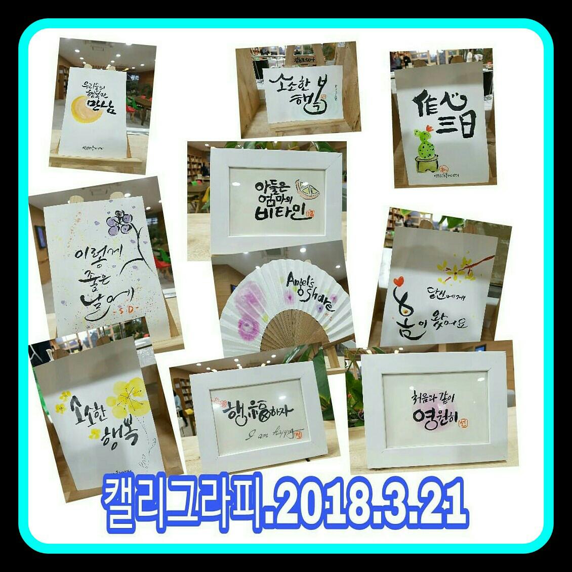 캘리 그라피  종강식날.모든 수강생 선생님들이 작품을 3층 로비에 전시하였다.