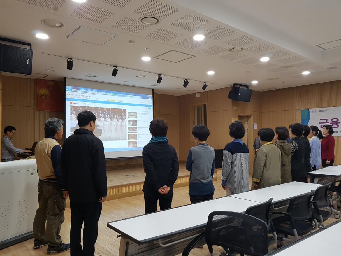오늘은 특히 본격적인 연습에 앞서 모두 앞으로 나와 둥글게 서서 목소리를 가다듬는 발성 연습이 있었습니다.