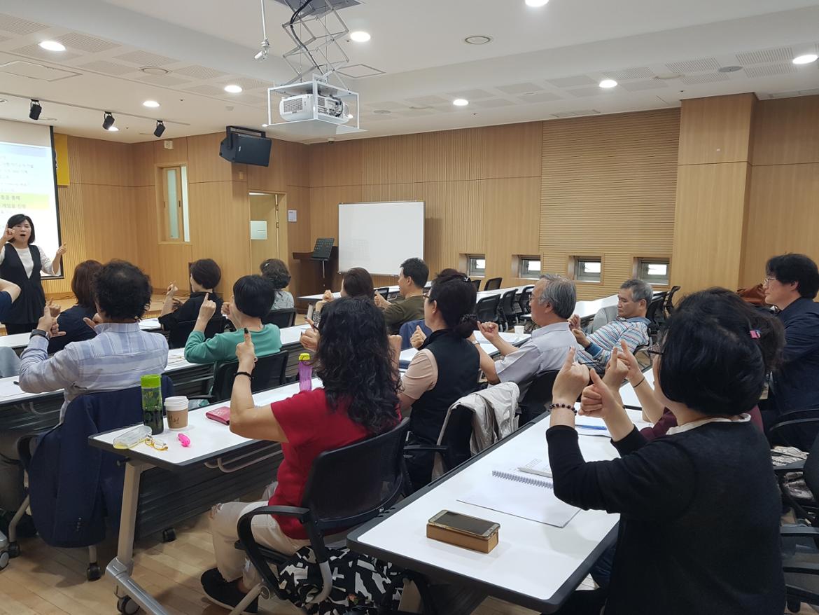 스스의 날이기도 한 오늘 5월 15일(화) 영등포 50+센터 4층 강당 에서는 4회차 레크레이션지도사 자격증과정 강좌가 열렸습니다.