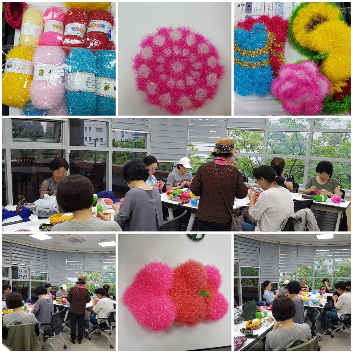 -오늘의 내용: 예쁜 수세미실로  수세미 말들기