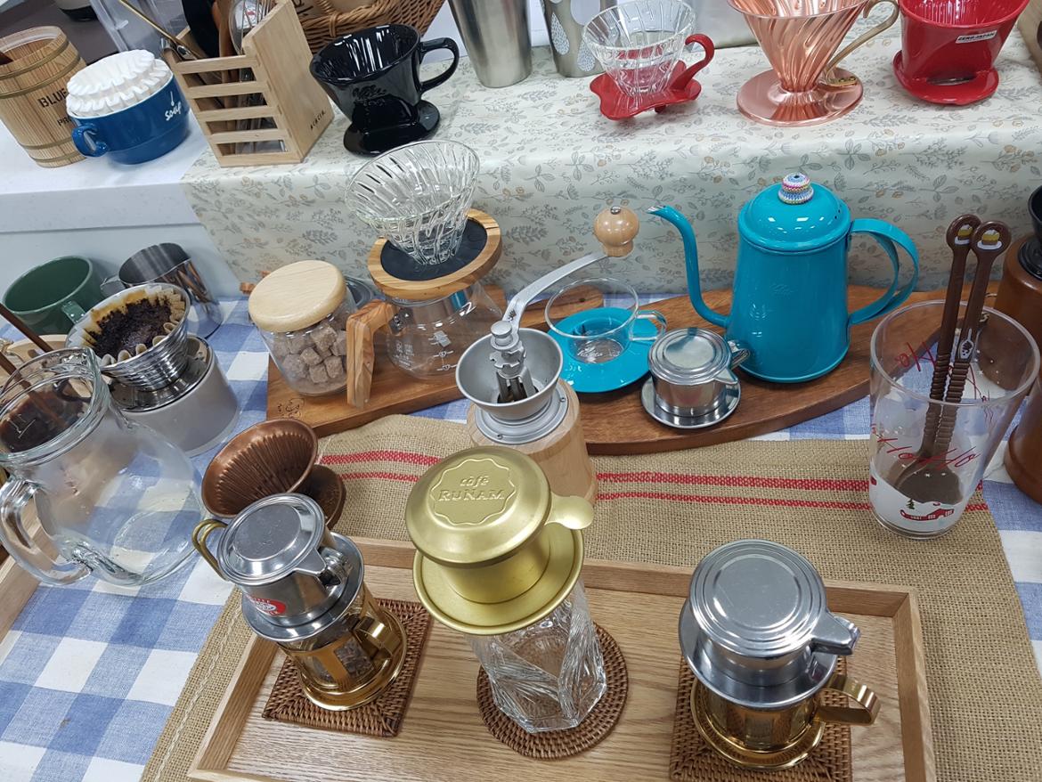 베트남 커피를 내리기 위한 드리퍼(핀)와 연유를 넣을 유리잔 입니다.