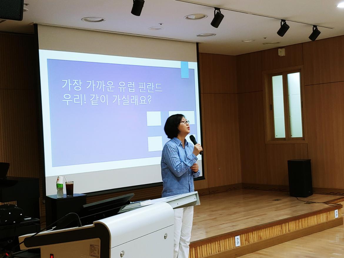 2019년 5월23일(목) 오후 1시30분~3시30분 4층 강당에서 " 핀란드로 떠나요" 라는 주제로 강연을 했습니다.