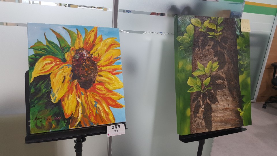 열정적인 해바라기를 그리셔서 강사님 옆에 당당히 그림을 놓으신