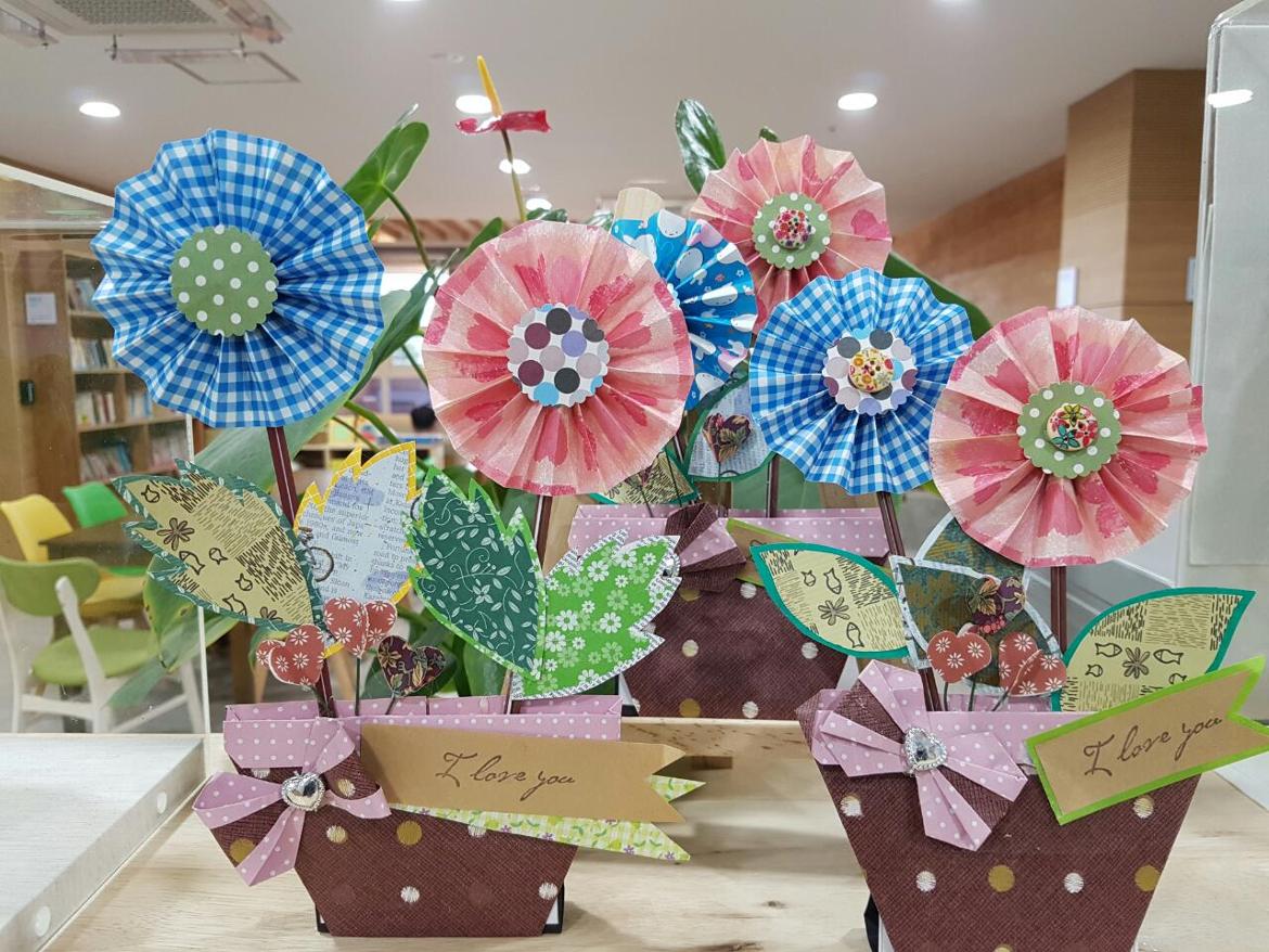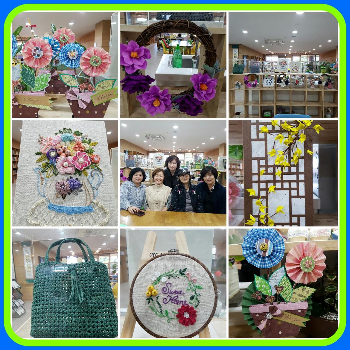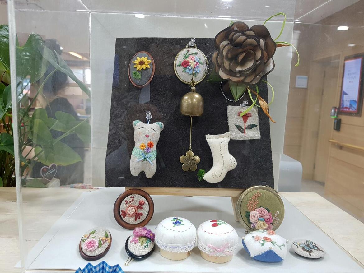 입체자수와 페이퍼플라워를 3층 홀에서 전시중이예요.