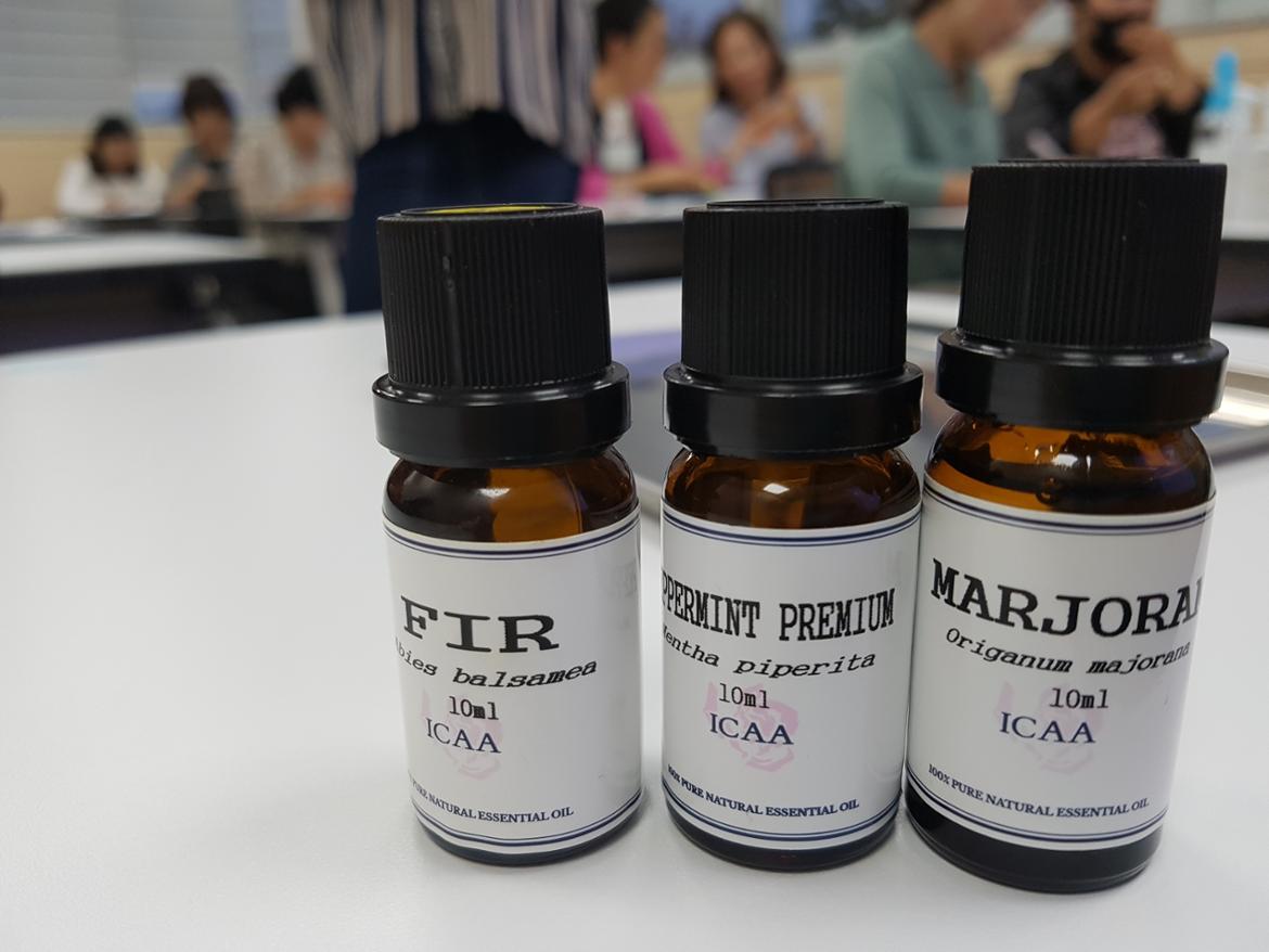 증상별 아로마 블랜딩 실습이 세 시간에 걸쳐 진행되었다.